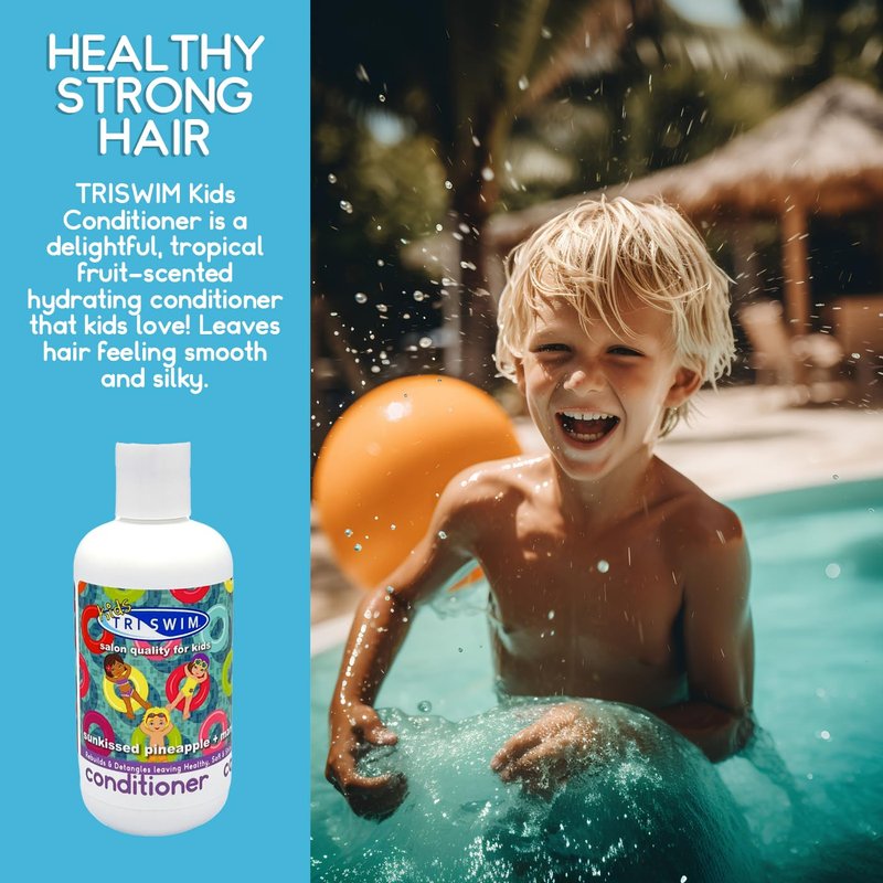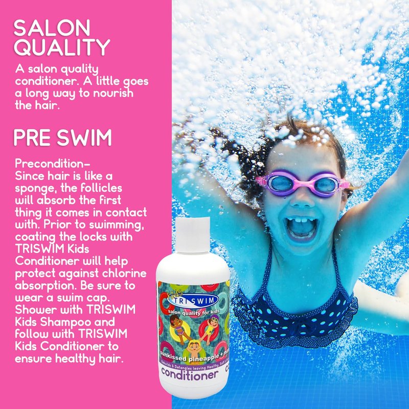 - MOISTURIZING CONDITIONER: TRISWIM Kids Conditioner pampers hair as it highly moisturizes. This innovative formula works to hydrate, condition, and detangle while improving dry and damaged hair without leaving a heavy buildup.