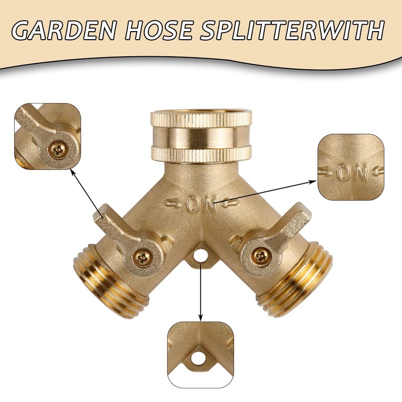 - 2 WAY Y GARDEN HOSE CONNECTOR: Water intake internal diameter: 3/4 inch. Water outlet external diameter: 3/4 inch. Fits all 3/4 inch standard garden hose. 2 valves for flow control. Bear water pressure up to 80 PSI.