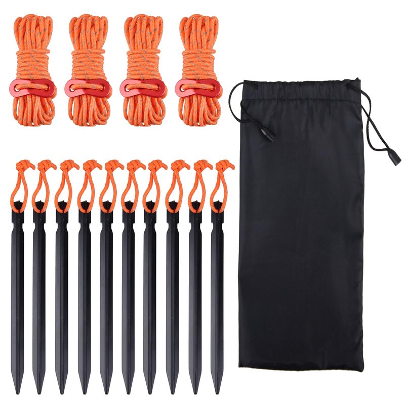 - ✅ STAKES & ROPES SET -- 10 tent stakes and 4 guy lines fit into the included carry pouch, which is perfect for 1 to 2 tents on a hiking, backpacking, or camping trip