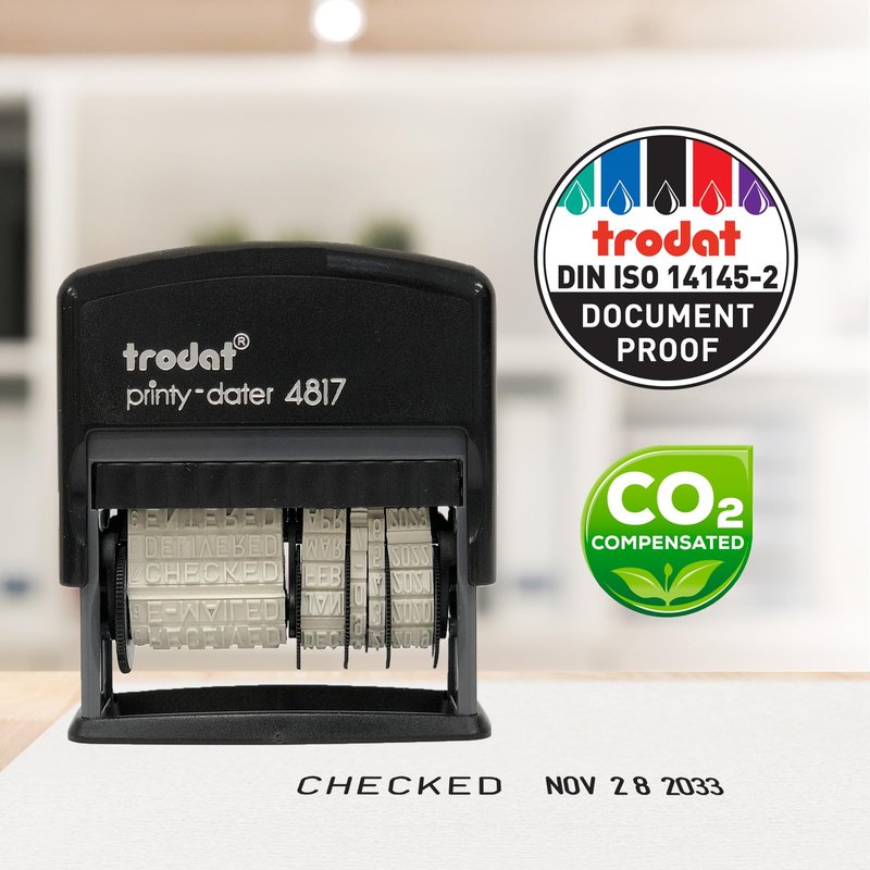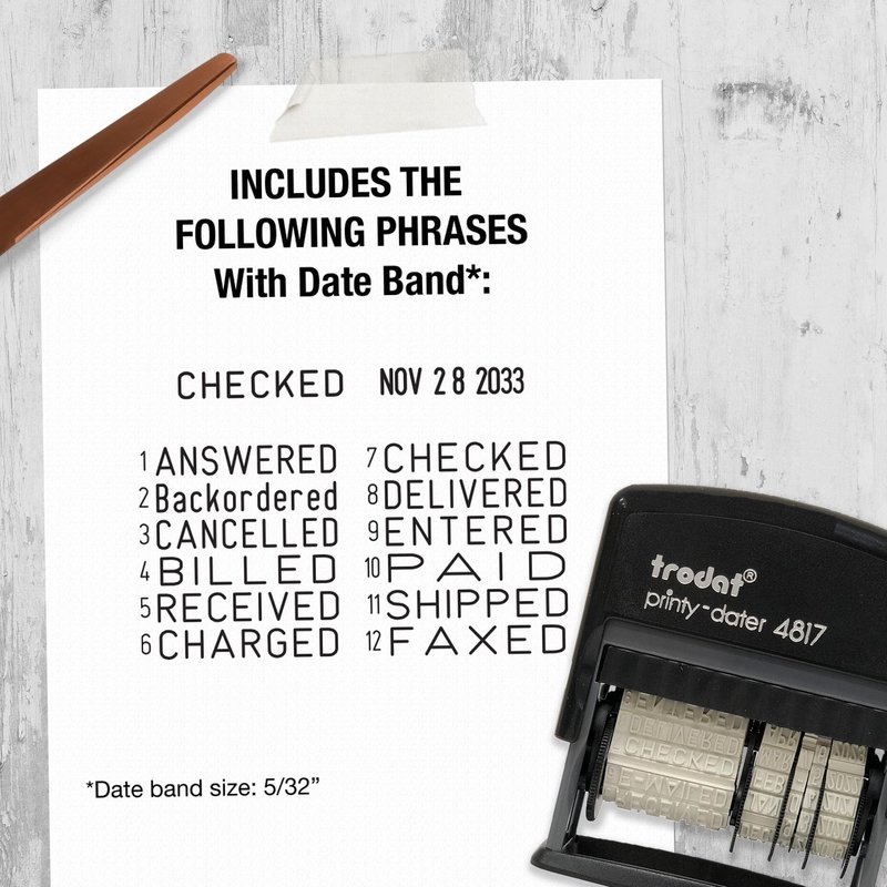 Trodat Printy 4817 Economy Dial-A-Phrase, 12 Popular Office Messages, Month in Letters, Day and Year in Numbers, Rubber Date Stamp – Self Inking (Black)