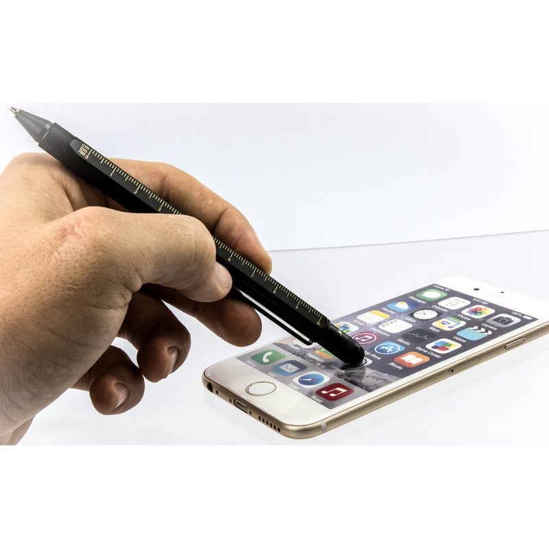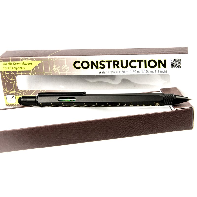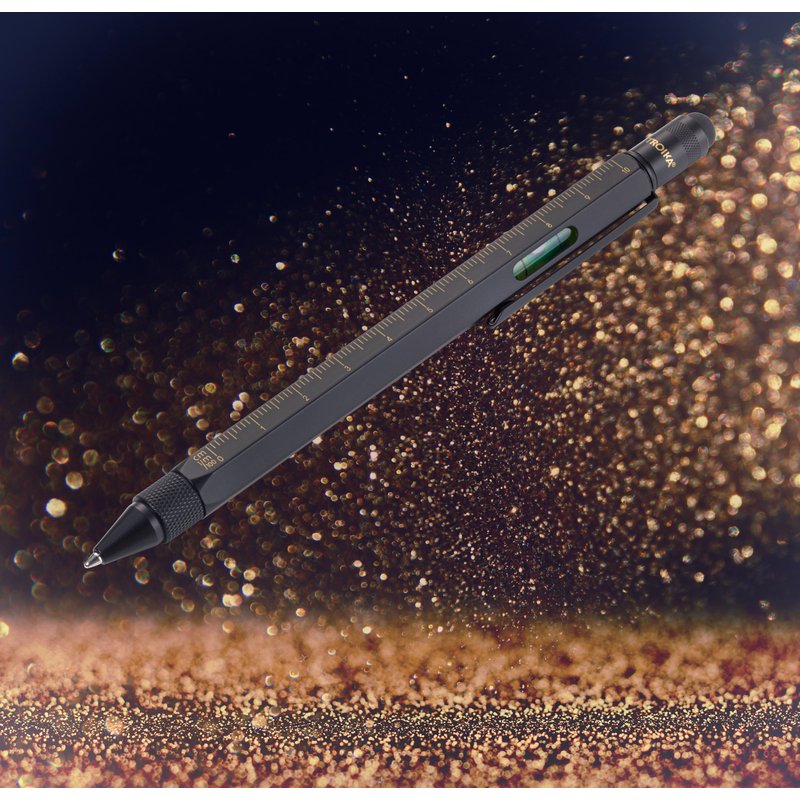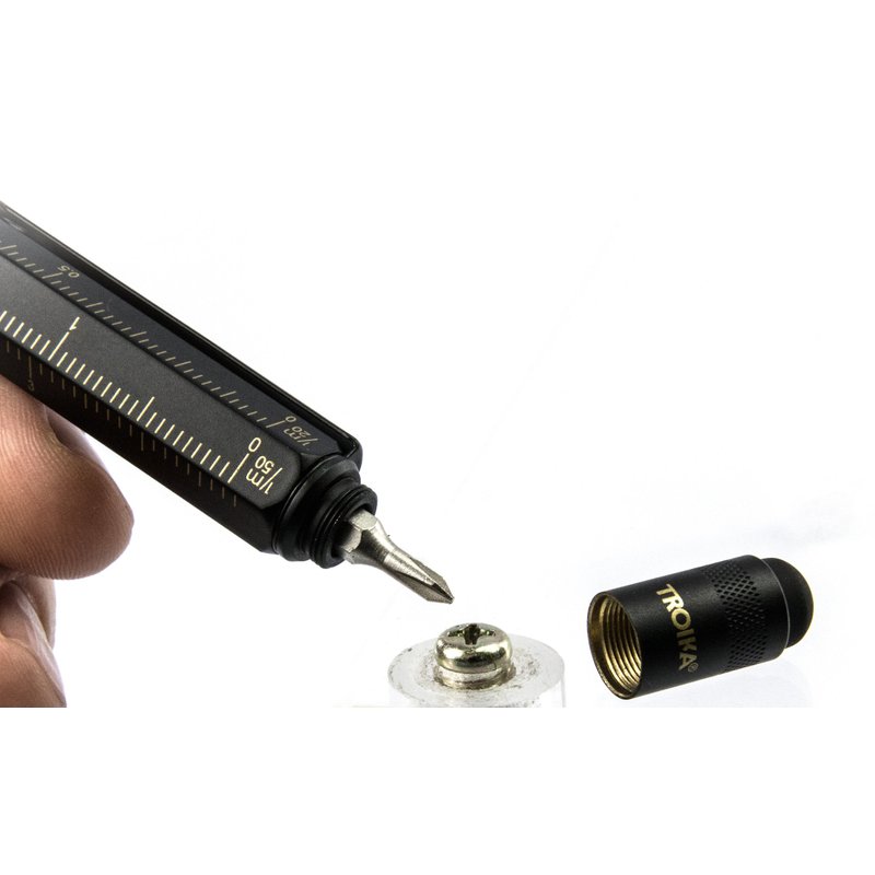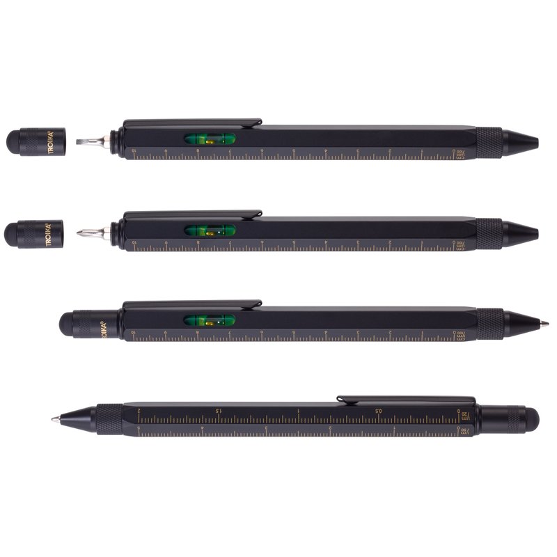 Troika CONSTRUCTION Multitasking Ballpoint Pen - PIP20/BG - Black/Gold - Centimetre and Inch Ruler - 1:20 m and 1:50 m Scale - Spirit Level - Slotted and Phillips Screwdriver - Stylus
