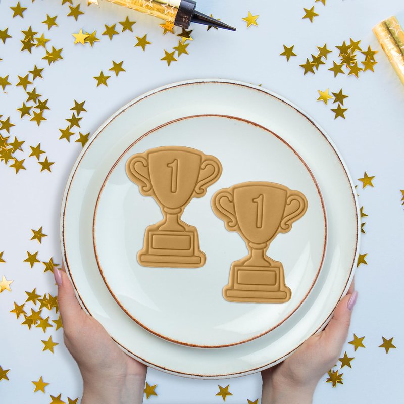 Trophy Cookie Cutter with Stamp – Moose Goods | Food-Grade Plastic | Easy to Use | Sports Award Cookie Mold for Baking & Decorating