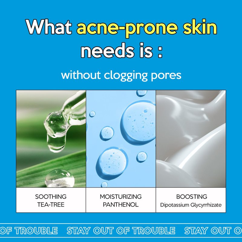 Introducing Troubless Hydro Soothing Moisturizer Face Cream, a game-changer for individuals with water-deficient oily skin. We understand the unique challenge of oily surfaces paired with dry skin underneath, and our Korean moisturizer is designed to tackle this head-on while maintaining a low pH level to bolster your skin's natural barrier.