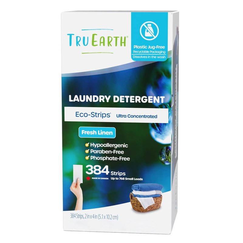 Tru Earth Compact Dry Laundry Detergent Sheets, Bulk, up to 768 Loads (384 Sheets) - Paraben-Free - Original Eco-Strip Liquidless Laundry Detergent, Travel Laundry Sheets - Fresh Linen