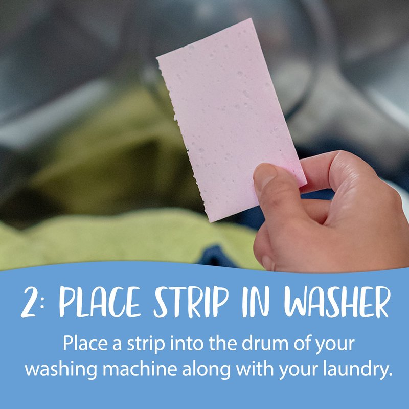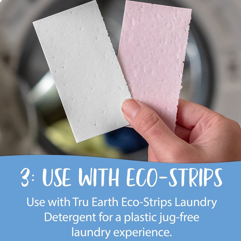 Directions: Simply tear off a strip, toss it into the washing machine with your load of laundry at the beginning of the cycle, and relax; for larger loads, use 2 strips. For smaller loads, use a half strip. These can be used in conjunction with your favorite Tru Earth Laundry Detergent Eco-Strip.