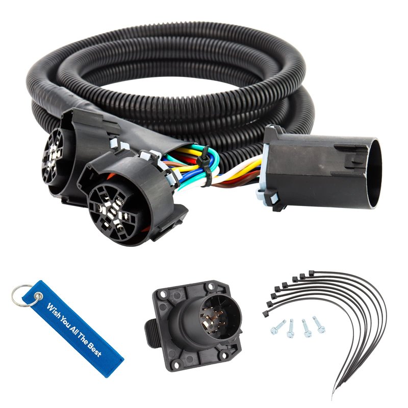- 【Trailer Wiring Harness Extension】The harness is designed to be an extension of the existing tow wiring of your truck. It retains the use of the original 7-way RV rear socket, while adding an additional 7-way socket on the truck bed.