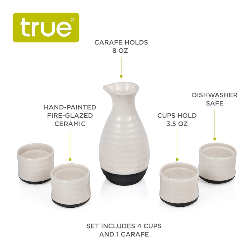 True Fervor 5pcs Ceramic Sake Set, 4 3.5oz Saki Cup Set & 1 8oz Sake Bottle Carafe - Traditional Japanese Tokkuri & Saki Cups Drink Gift Essentials - White