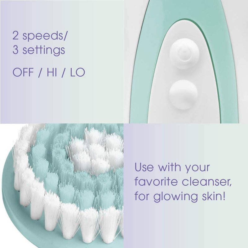 - New Spin On Clean: Our 2 speed facial cleansing brush features a 360° rotating brush head, is water resistant, and includes 3 facial brush attachments to gently exfoliate + cleanse. Battery Operated ~ requires 2 AA Batteries (not included)