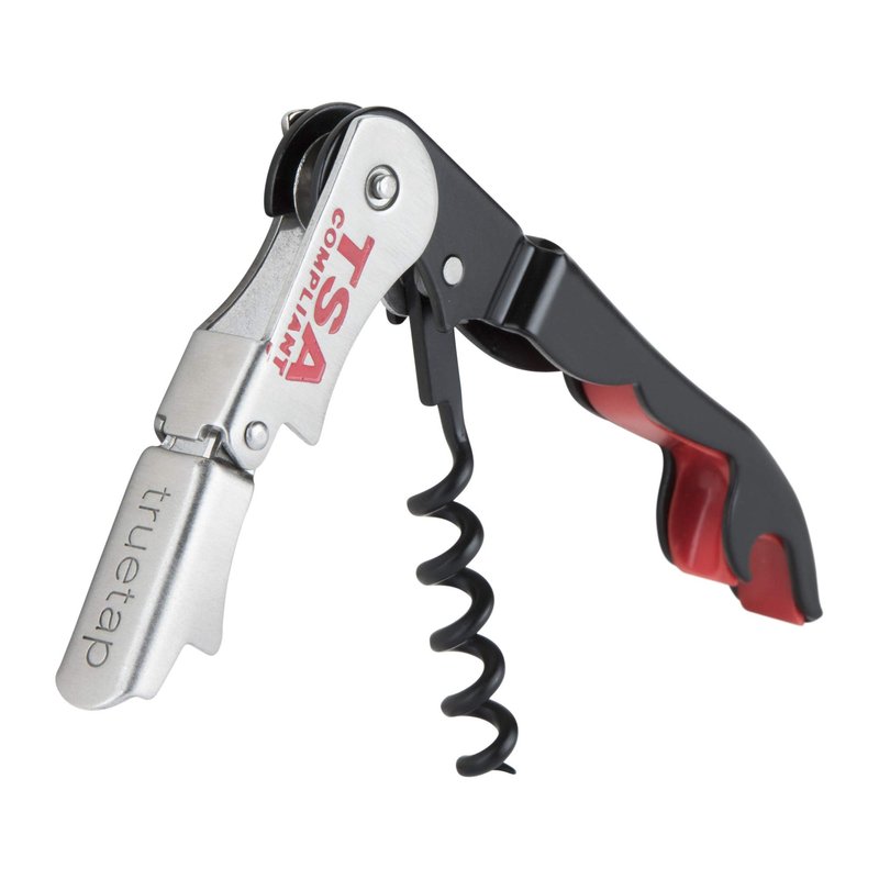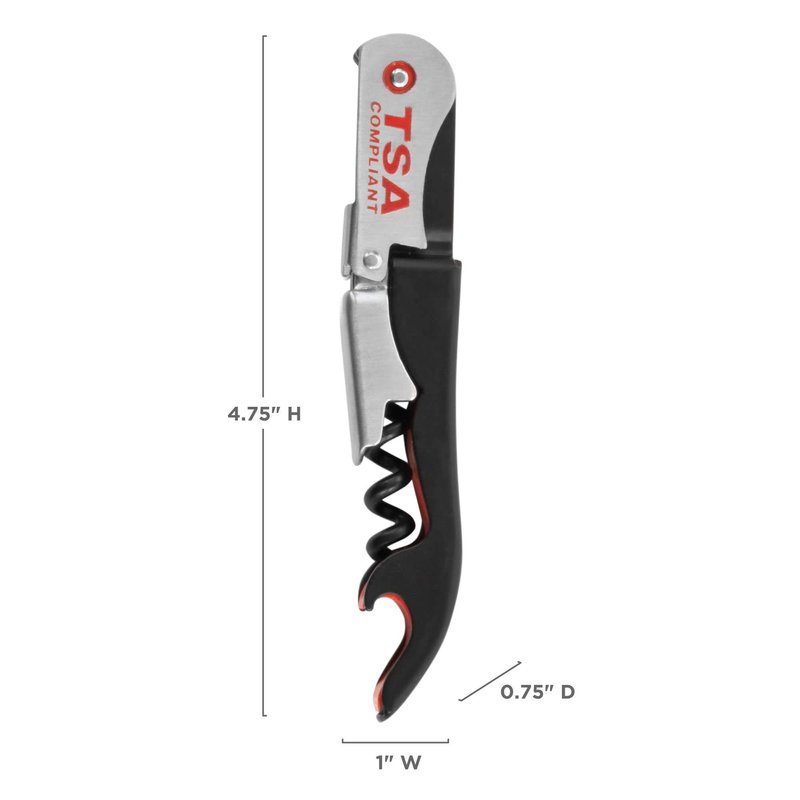 True Jetsetter Black Double Hinged TSA Compliant Corkscrew Bottle Opener, Stainless Steel Wine Key 0.75x4.75x1