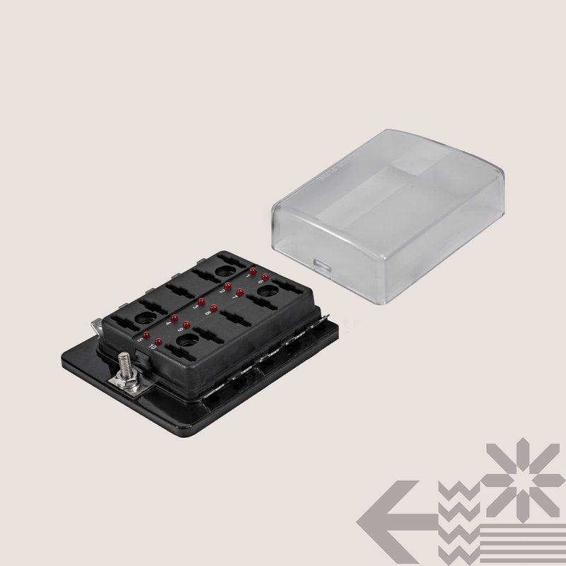True Mods 10 Way Blade Fuse Box for Automotive [ATC/ATO Blade Fuses] [100 Amp][LED Indicator] [Protection Cover] [10-30V DC; 12V] Auto Marine Fuse Block