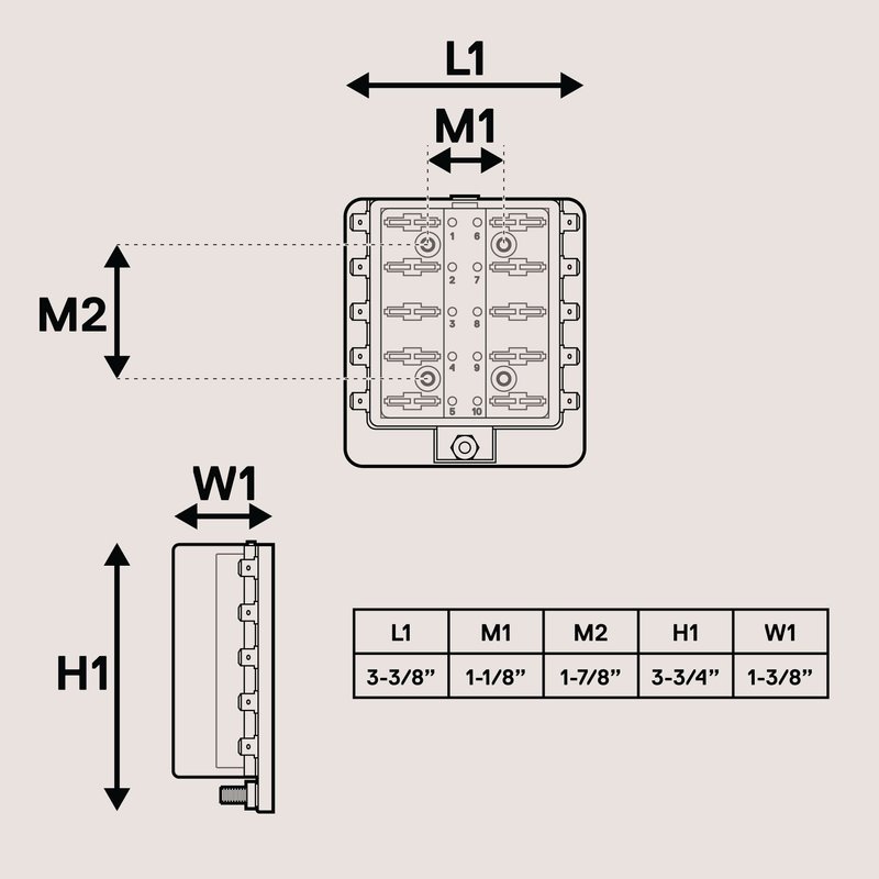 - HEAVY DUTY CONSTRUCTION - This fuse panel has a #10-32 stud for power feed, .250” male quick disconnect terminals, and can take an input voltage of 10 – 32 V DC.