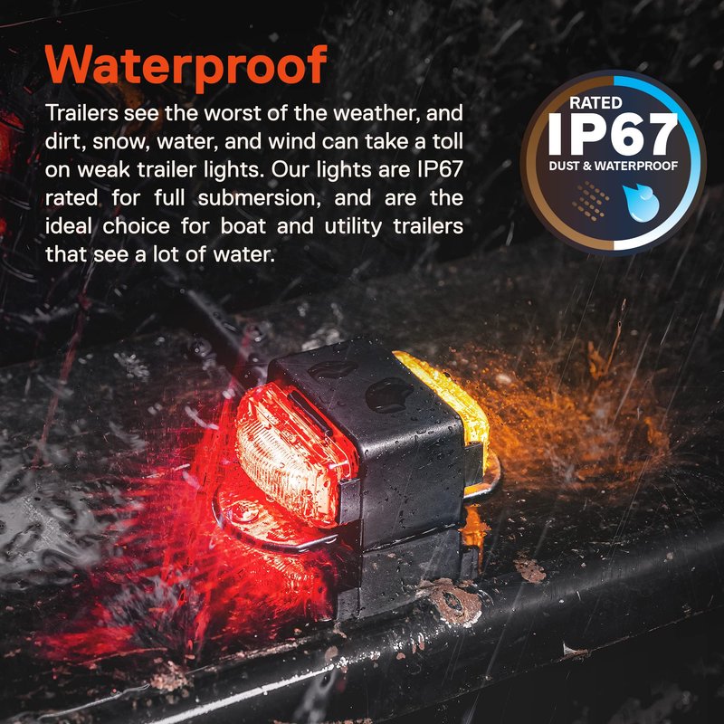 - WATERPROOF - Trailers see the worst of the weather, and dirt, snow, water, and wind can take a toll on weak trailer lights. Our lights are IP67 rated for full submersion, and are the ideal choice for boat and utility trailers that see a lot of water.