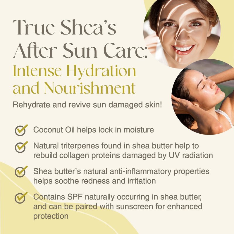 - Benefits Your Skin’s Ability to Produce Collagen - Rather than using hard raw shea butter or plain coconut oil , indulge in True Shea body butter which contains both in a smooth, creamy formula! Using unrefined instead of refined shea butter provides more benefits, including assistance in repairing damaged collagen fibers.