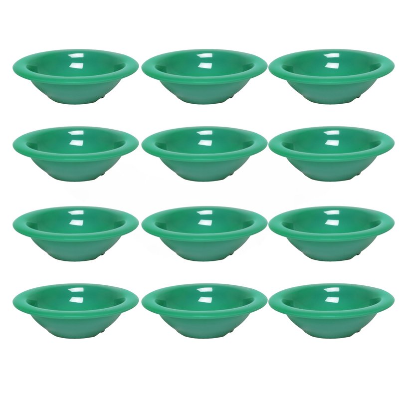 The TrueCraftware - 4 oz Salad Bowls Green Color Melamine Set of 12 brings fresh style and everyday functionality to your table with a vibrant green hue that enhances food presentation and brightens any dining atmosphere.