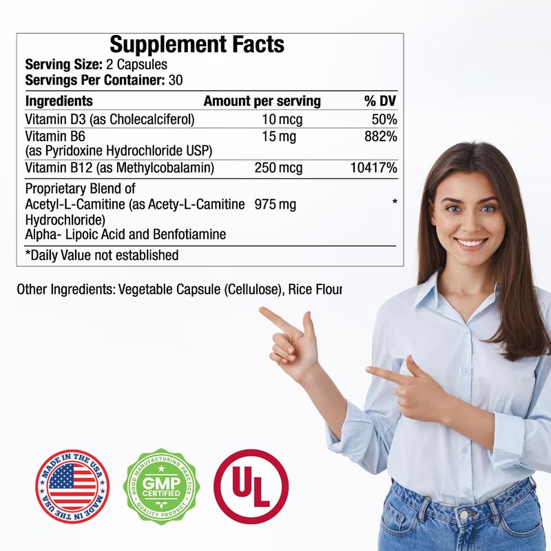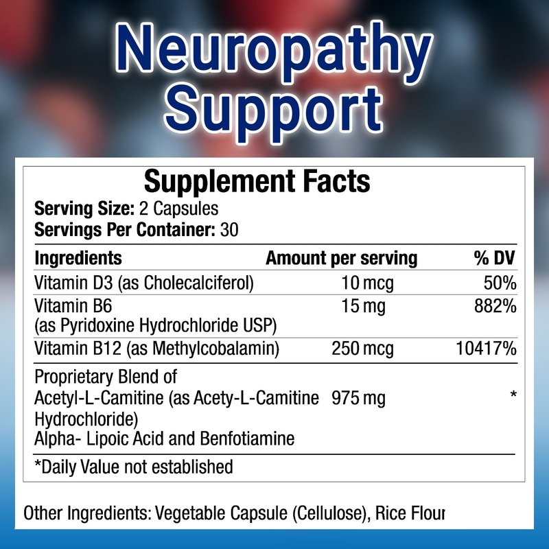 TRUEMED High-Potency Neuropathy Support Supplement with Acetyl-L-Carnitine, Thiamine, Pyridoxine HCl, and Vitamin B12 - Neuro and Nerve Support - 60 Vegetable Capsules