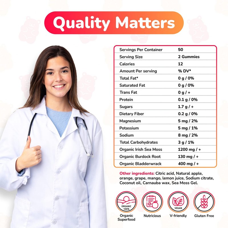- MULTIPLE HEALTH BENEFITS: Our sea moss chewable gummies are more than just a delicious everyday delight. Regular use of these seamoss gummies provides thyroid support, digestive support, immune system.
