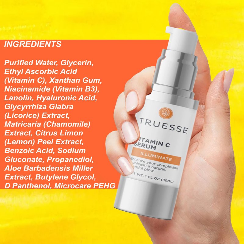 TRUESSE Ayurvedic Vitamin C Serum - Antioxidant Powers to Heal and Restore Skin for the Perfect Daily Glow - Hyaluronic Acid for Hydration