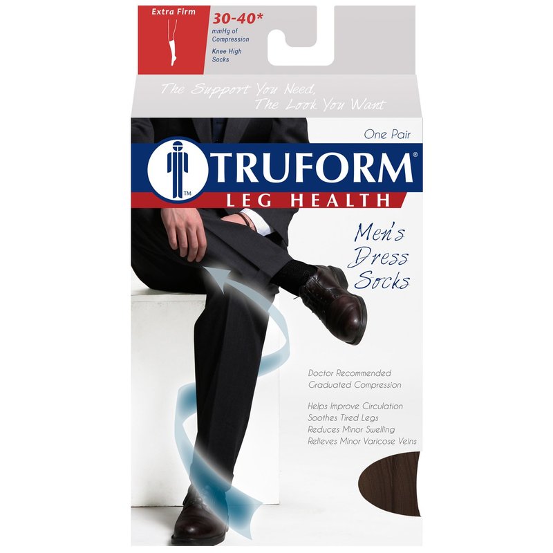 - Truform 1954; Men's trouser style support socks; 30-40 extra-firm strength graduated compression