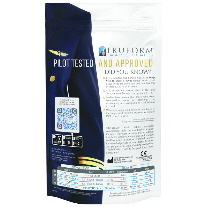 - Truform 1923; Unisex support socks for frequent flyers, road trips; 15-20 mmHg graduated compression