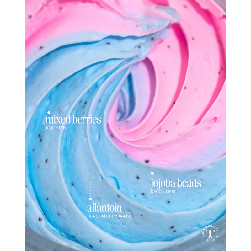 - A natural, exfoliating scrub that utilizes strawberry and blueberry to clear skin for a smoother, healthier complexion. Enriched with allantoin, a natural plant extract, hydrated silica and sugar beets, this product dramatically softens skin and controls blemishes while improving the skin’s overall defenses.