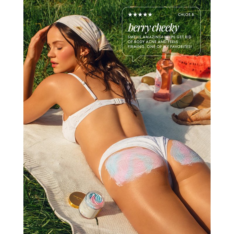 - Berry Cheeky offers a gentle, yet effective two-in-one formula for daily care of butt breakouts. This non-stripping formula helps to clear active breakouts and even hyperpigmentation while preventing moisture loss and the formation of fine lines.