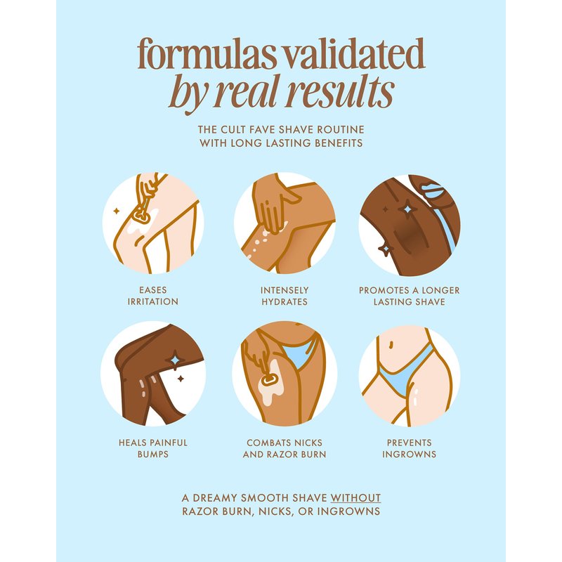 - A smoothing, moisture-drenching serum that soothes and feels light and elegant, like pink satin sheets wrapped around freshly shaved legs.