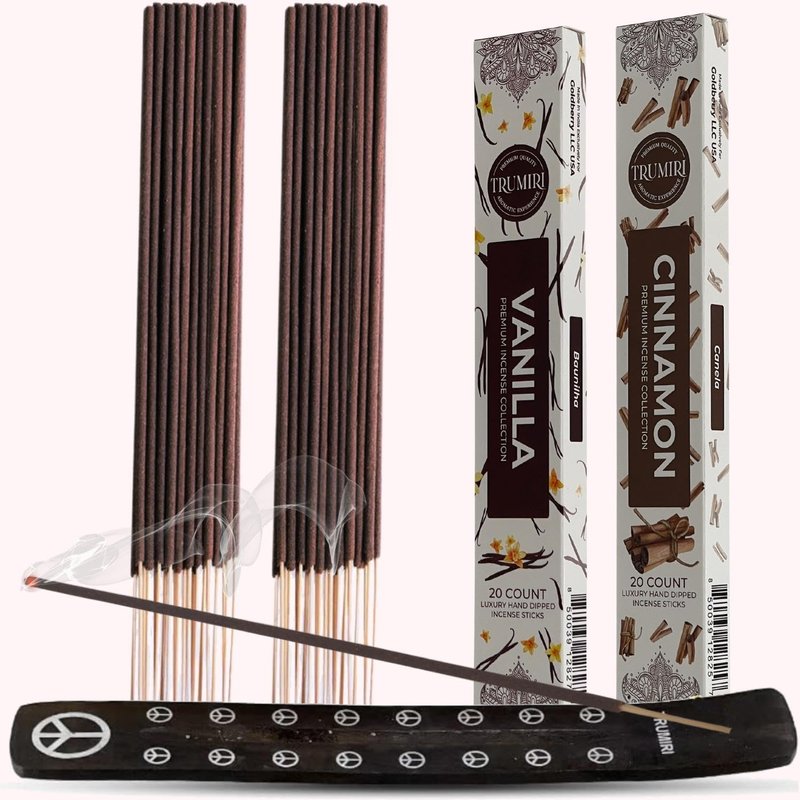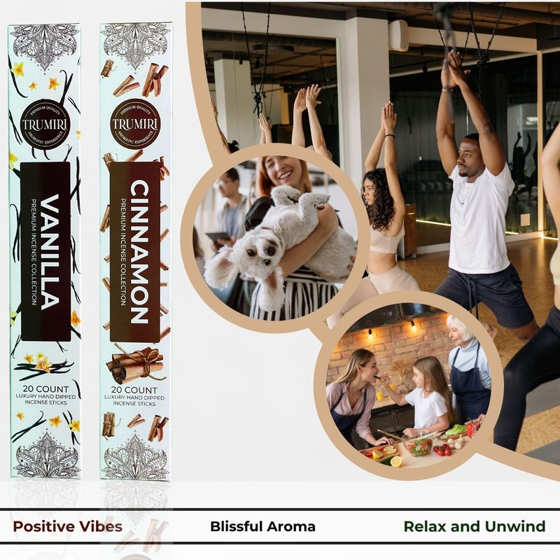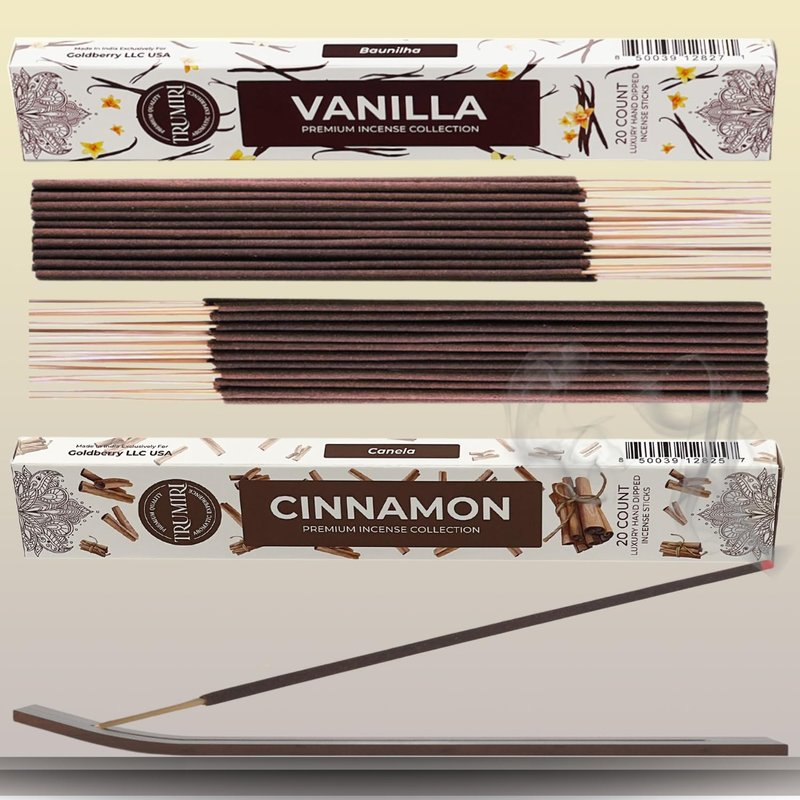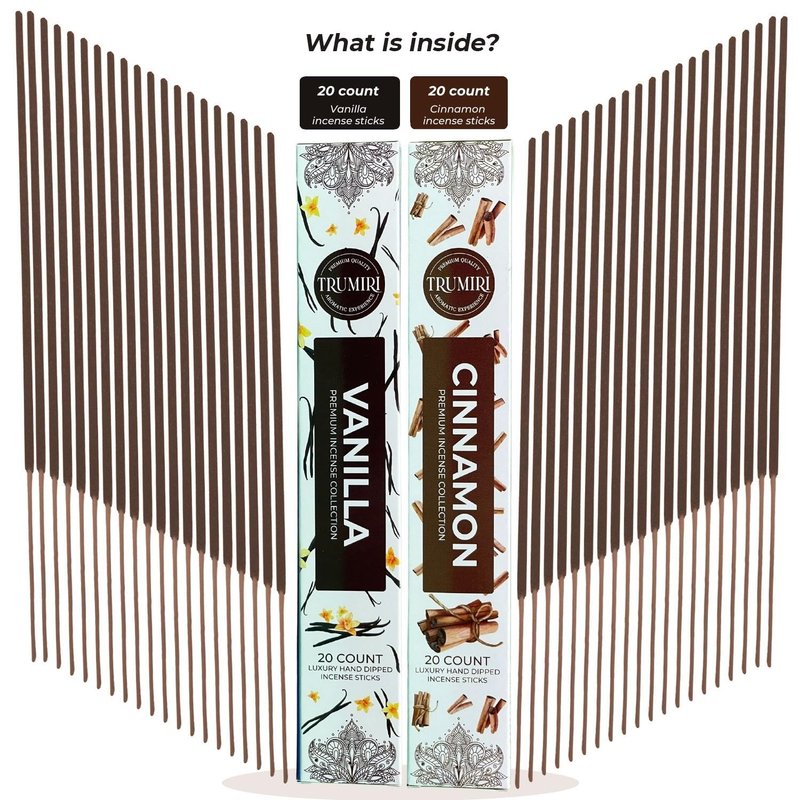 Trumiri Incense Sticks - Combo Pack of 40 Insence-Sticks - 20 Vanilla + 20 Cinnamon - Insenses - Insents - Incents - Inscense - Incence - Incienso - All Natural Incense Sticks