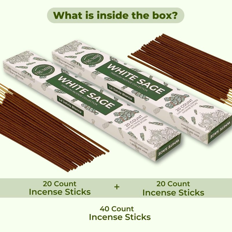 Trumiri Incense Sticks - Total 40 White Sage Insence-Sticks - Dual Pack of 20 Insenses - Insents - Incents - Inscense - Incence - Incienso - All Natural Incense Sticks