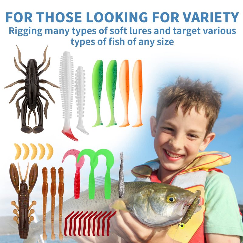 - Fishing Essentials - Fishing Tackle Kits are available in different materials and sizes of lures. Suitable for both saltwater and freshwater and works well in all water layers, including slow sinking lures. This most versatile fishing kit which allows you to fish comfortably and easily on lakes, ponds, streams, rivers and sea to catch different kinds of fish like Carp, Perch, Pike, Salmon, Tarpon, Trout, Tuna, Walleye, Bass and others.