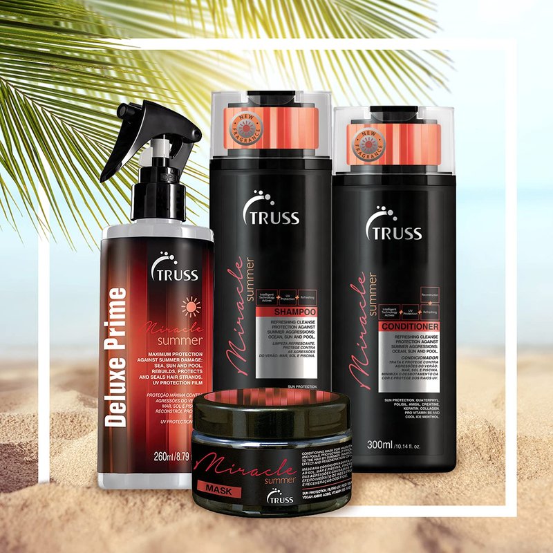 Truss Miracle Summer Mask protects hair from UV rays and other damage that happens during the summer, whether you’re at the pool or the beach. Specially formulated for people who want to soak up the sun without the negative effects it can have on your hair. With vitamin E, seaweed extract, vegan amino acids, quinoa extract, antioxidants, and natural proteins, your hair will get the care and moisture that it desperately needs. Truss hair masks hydrate hair effortlessly to bring strength and elasticity to every strand.