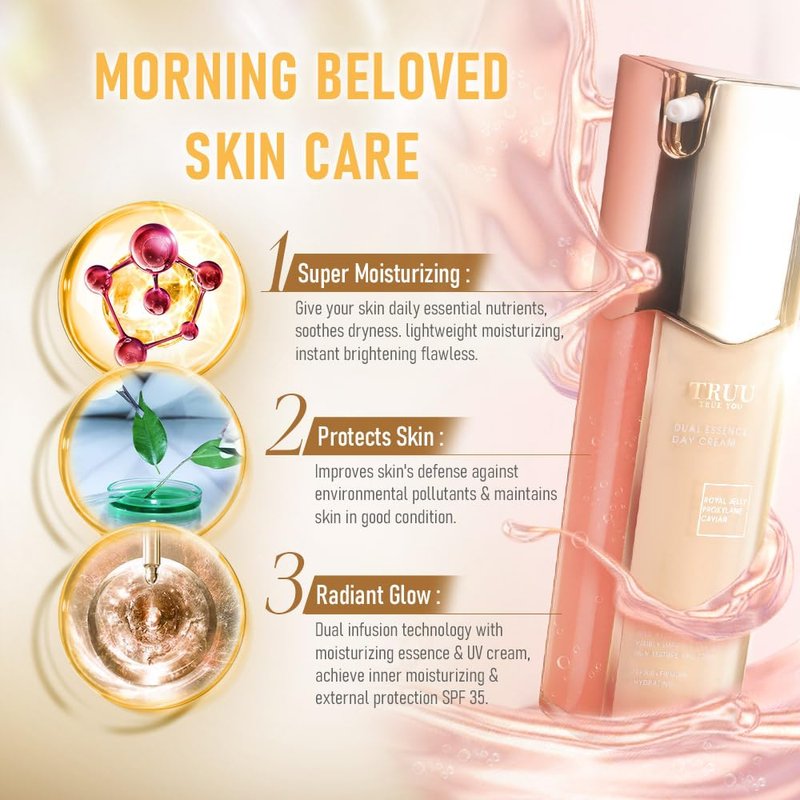 Elevate your daily skincare routine with the TRUU Dual Essence Royal Jelly Day Cream SPF35. Hydrate, firm, and protect your skin with our advanced formula. Order now and reveal a more youthful, radiant complexion every day!