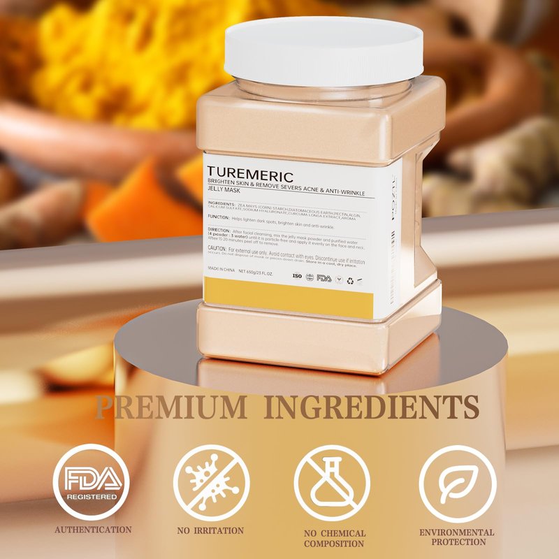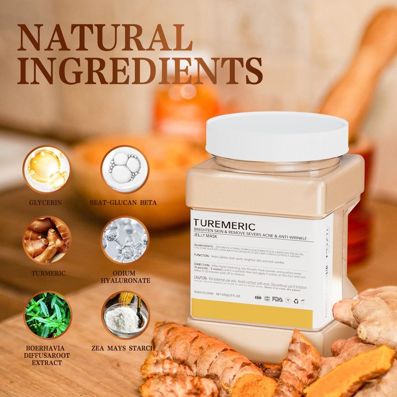 - 【TURMEMIC JELLY MASK POWDER】- Jelly Mask is enriched with turmeric extract.Jelly Mask Powder is made with natural ingredients, fragrance free, preservative free, mineral oil free and other harmful ingredients. It is also very friendly to sensitive skin types.