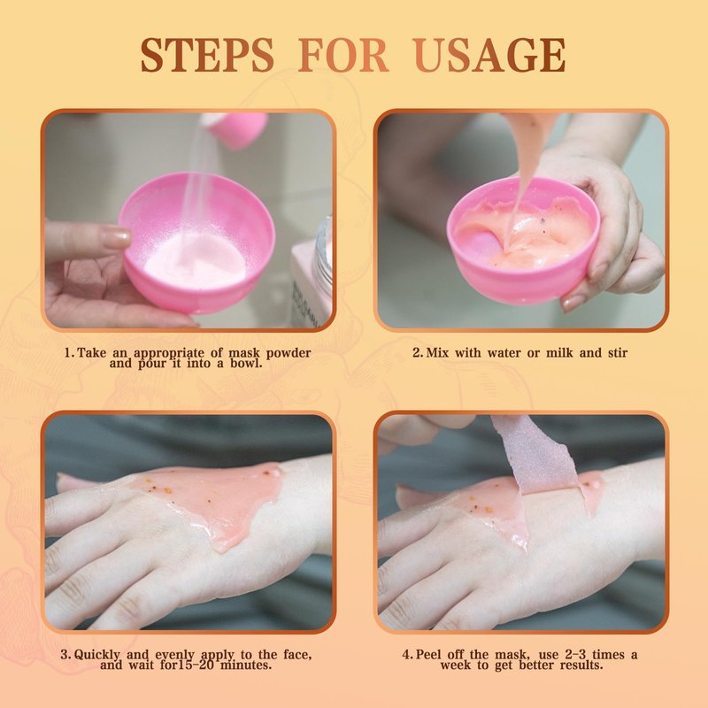 - 【HOW TO USE JELLY MASK POWDER】- Recommended 4 spoons of powder with 3 spoons of water / 4:3 ; 3 spoons of powder with 3 spoons of water ,you just apply the mask to your face, wait for 15~20 minutes, paste to form the overall elastic soft film, and after that gently take it off and rinse the face. It's that easy