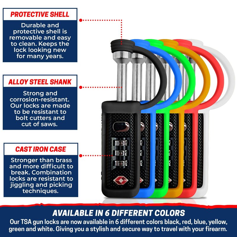 - Travel with Ease - Our Tsa-approved gun locks are designed to be portable, flexible, and convenient, a gun lock that meets all the firearm travelers' needs. Travel safely with your firearms over land, through the sea, or across the air. This lock is airline-compliant with a travel sentry red diamond logo, indicating to security personnel that the case can be open for inspection during air travel.