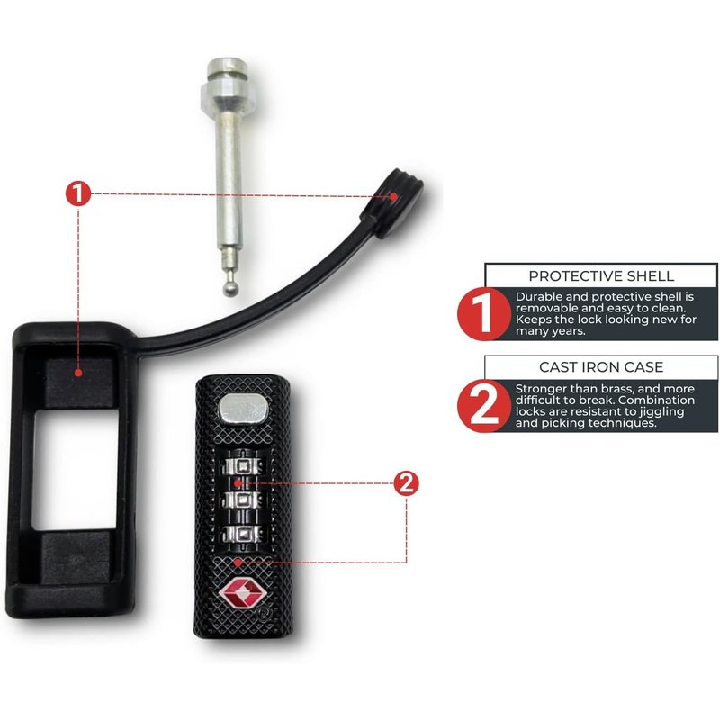 Cedar Mill Fine Firearms TSA Approved Gun Case Lock in black with a protective rubber sleeve and a cut-resistant MonoShaft️. It offers a premium, high security, single shaft padlock for your luggage, gun, rifles, pistol, and revolver cases. Built with a high-quality dial combination that has been around for over 100 years. Aside from its security and reliability, our TSA-approved gun case lock combination is cheaper than a digital electronic lock. A Gun Case Lock that is superior to any other brand. Compared to an electric power digital combination lock, in the event of a power outage, you cannot open your case and it can lead to problems and frustrations. Our Gun Case Lock allows you to have full-time access while experiencing the highest level of quality of security and reliability. This lock can be used not only for your gun luggage but also for case lockers, drawers, cabinets, mailboxes, interior doors, suitcases, baggage, and gym lockers to keep them safe and help maintain privacy and security. Designed to be portable, durable, sophisticated, lightweight, and convenient for you to store and carry. It is easy to install and fit on almost all firearm case models. It is made out of weather-resistant materials such as alloy steel. Unlike other locks, the Cedar Mill Fine Firearms is a TSA Approved Gun Case Lock thus you don’t have to worry when traveling over sea, land, or air. Since the TSA Airport Security agents are trained to recognize the travel sentry certified logo and should not break the case lock. It offers 100% security of a padlock but can easily be operated in just one go and fits most firearm case lock holes. bag, pack, key,combo, backpack,accessories, large, masterlock, chain, keys, wire, camping, holder, pick, tent, best,locked,tool,locking,retractable, backpacks,handgun,protector, simple, size, alert, bolt, boxes, flex, flight, international, long, lunch, trunk,combinations, double, latch, professional, storage, traveler, vault, handguns, lockable,