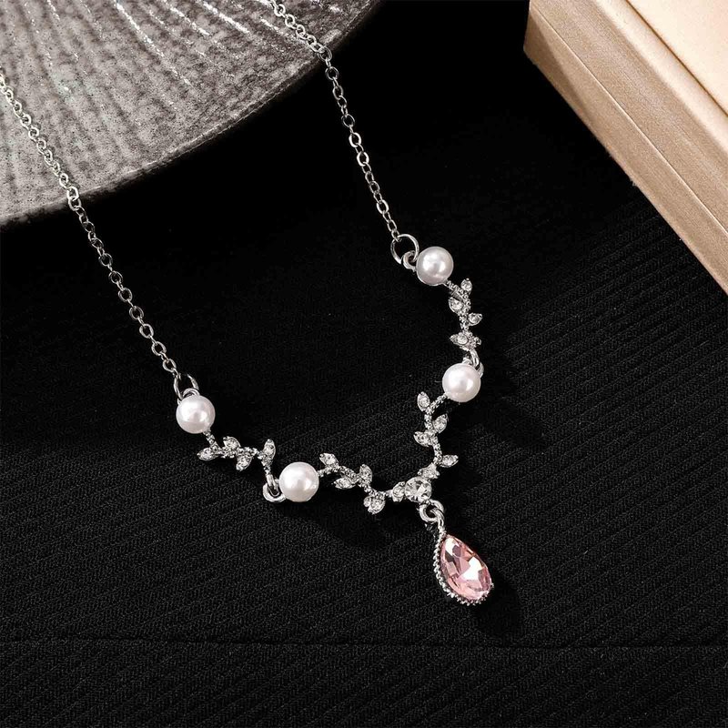 - Crystal teardrop pearl pendant necklace.Item Details:Handmade Item.Size:As Shown.Color:Silver.Materials:Ordinary Alloy.Location:Neck.Style:Boho/Vintage.There will be slight errors due to manual measurement.Due to the shooting environment,there will be slight color difference.