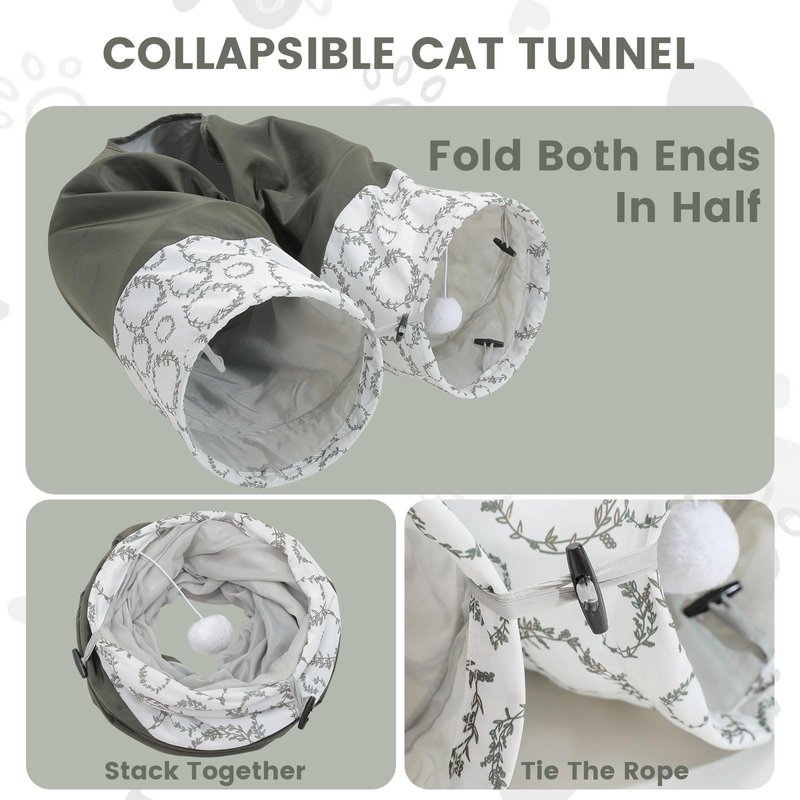 Create Your Own Cat Maze: The expandable design, along with ties and connectors at both ends, enables you to connect multiple tunnels, creating a maze-like structure for your pet's enjoyment. Hanging balls at the entrance add an extra element of fun, and a toy mouse is included to facilitate interactive play between you and your cat.