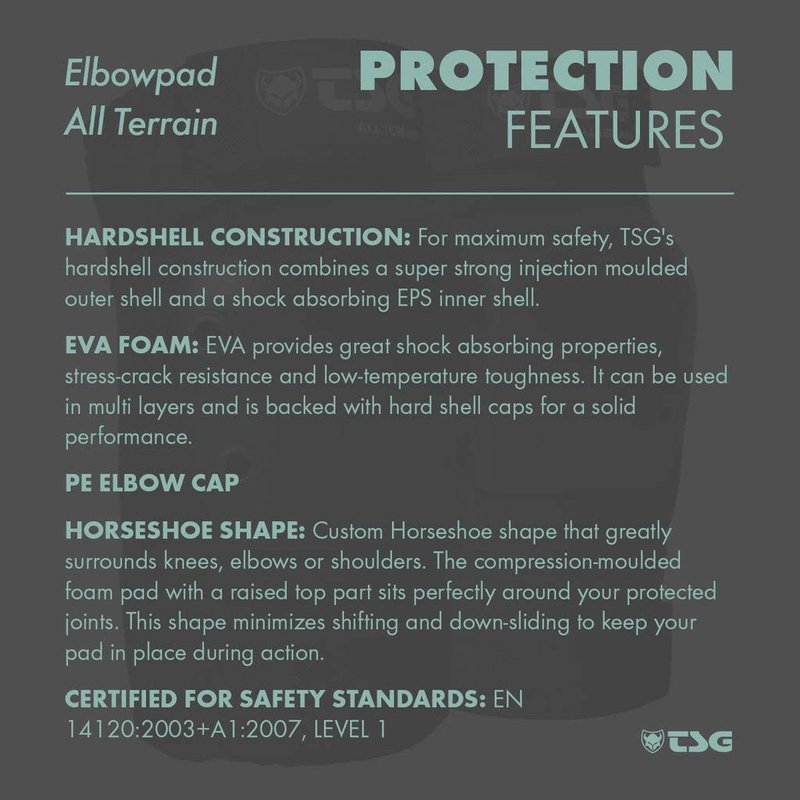 TSG Elbowpad All Terrain Protective Pad, Skateboarding, Hardshell, EVA Foam, PE Knee Pads, Pre Shaped, Horseshoe, Tear Resistant Nylon, 360 Degree Top Strap, Pull Over, Swiss, Black