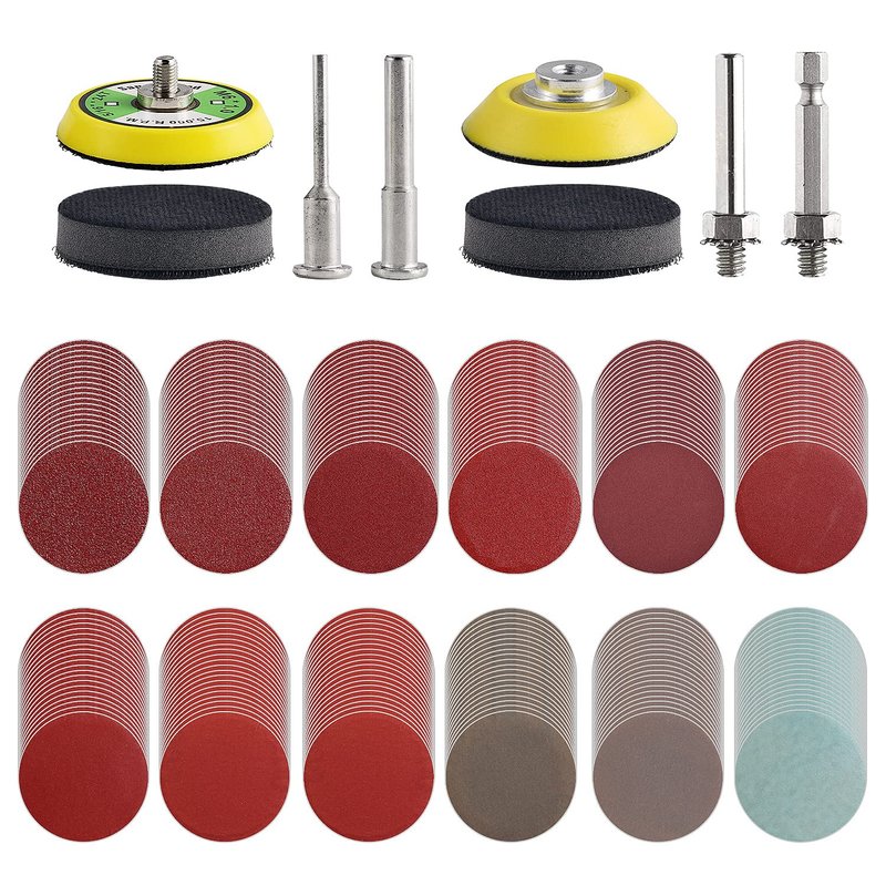 - ✔ 244 PACK – 240Pcs 2 inch Hook and Loop Sanding Discs (P80/120/180/240/320/400/600/800/1000/1500/2000/3000 each 20Pcs),1Pcs Air-Tool Backer Plate with 1/8"&1/4" Shank, 1Pcs Sanding Pad with 1/4"Round/Hex Shanks,2Pcs Soft Foam Layer Buffering Pad.