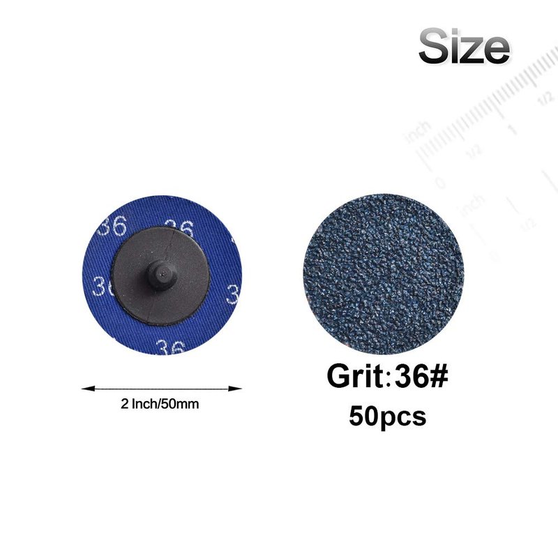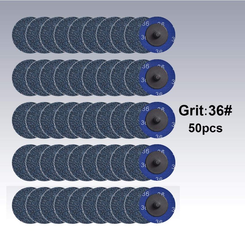 Tshya Quick Change Grinding Disc, 50 Pcs 2 inch Sanding Discs, Zirconia Coated Roll Lock Disc for Surface Prep (36 Grit)