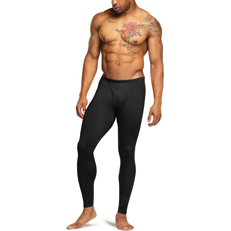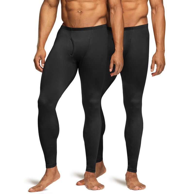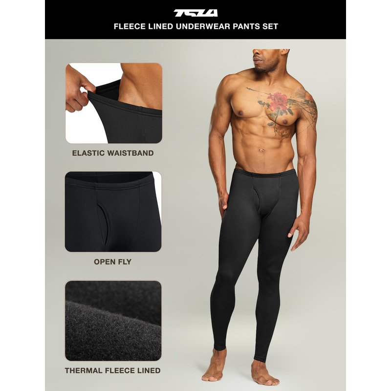 TSLA Men's Thermal Underwear Pants, Heated Warm Fleece Lined Long Johns Leggings, Winter Base Layer Bottoms, Thermal Fly-Front 2pack Black, Medium