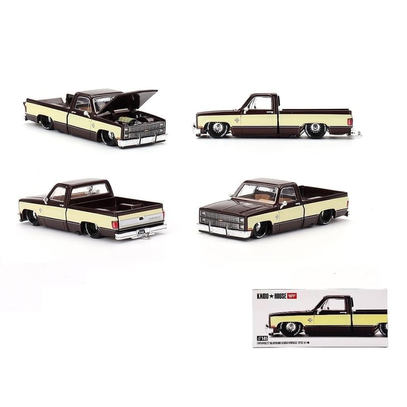 TSMMODEL Chevrolet Silverado Kaido Vintage Spec V1, Two Tone: Brown & Cream 1/64 (3 inches) Scale, Die-Cast Toy Pickup Truck by Kaido House