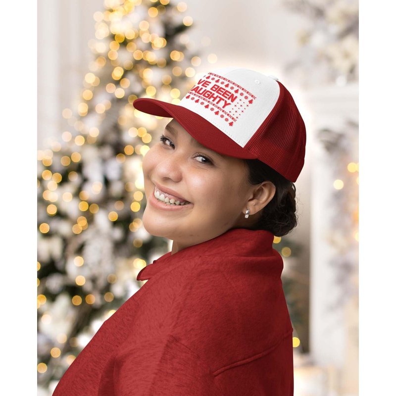 Tstars I've Been Naughty Funny Holiday Ugly Christmas Party Trucker Hat Mesh Cap One Size red/White