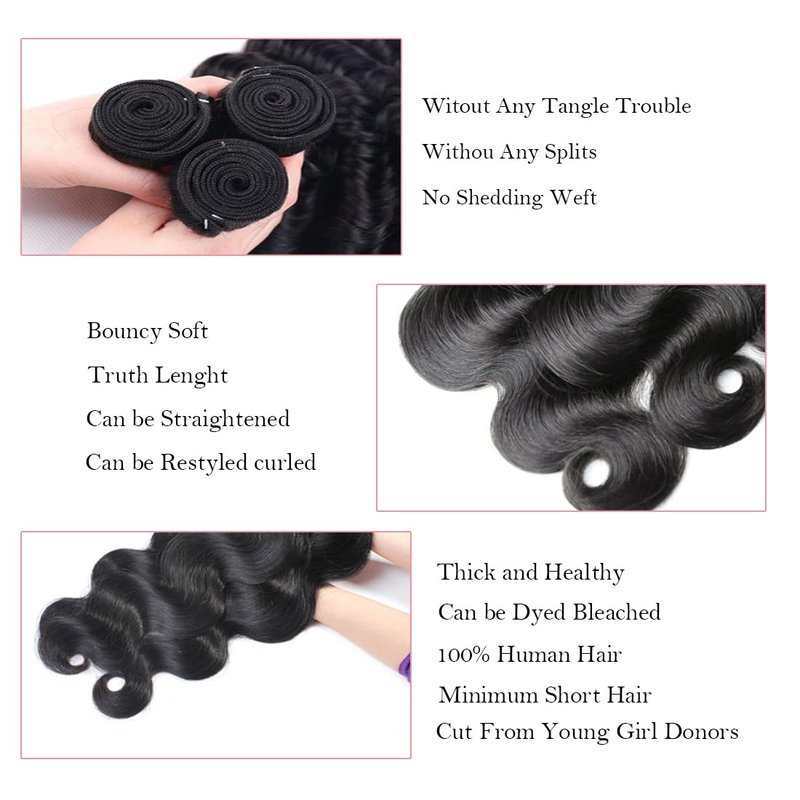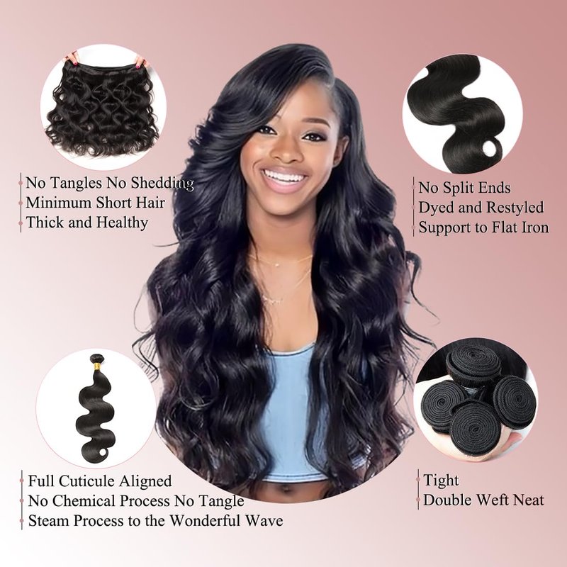 - 【Bundles Material】:Our body wave bundles human hair is made with raw Indian human hair, so it stays elastic and smooth no matter how much it's washed or used. No need to worry about knots and tangles.