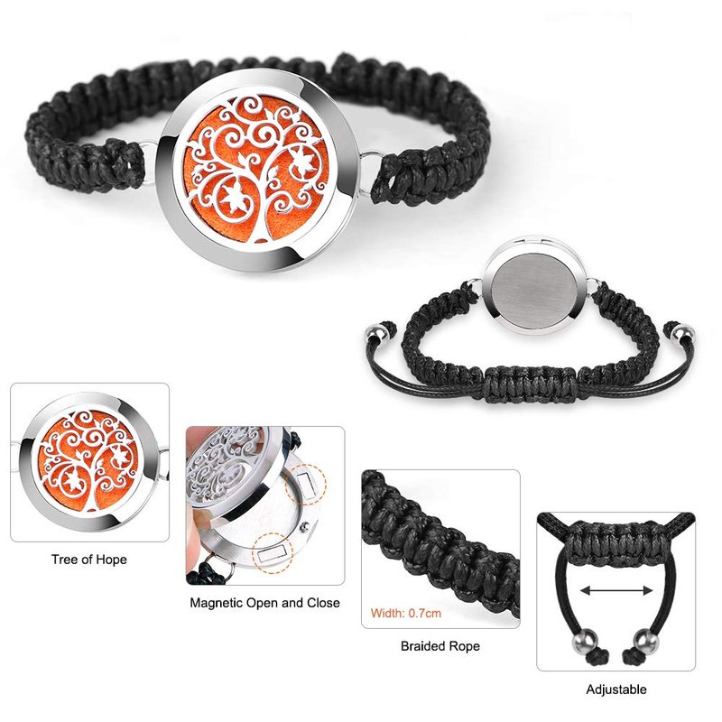 - Durable material: For this new design diffuser bracelet,The aromatherapy locket pendent are made of Hypo-Allergenic Surgical grade 316L Stainless Steel, smooth, durable, anti-allergy and no fading. The chain is adopt Leather rope handmade woven ,durable and comfortable to wear.The bracelet’s pendant-style locket has a diameter of 25mm and features a carefully carved tree of hope, which symbolizes protection for our loved ones.
