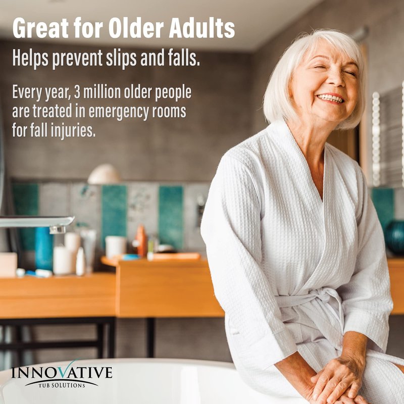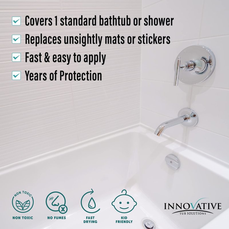 - HELPS PREVENT SLIP AND FALL ACCIDENTS: Innovative Tub Solutions' finely textured clear anti slip coating is bare bottom, paw and foot friendly. Our anti skid coatings increase traction to reduce accidents and are especially popular for toddlers and older adults. Great alternative to unsightly bathmats or stickers.