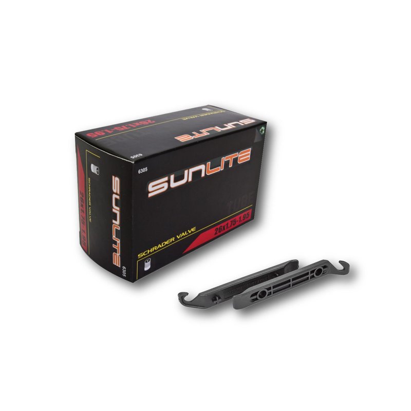Tube & Tire Levers - 26 x 1.75-1.95 32mm SCHRADER Valve, Sunlite with tire levers for safely removing the tire from the rim