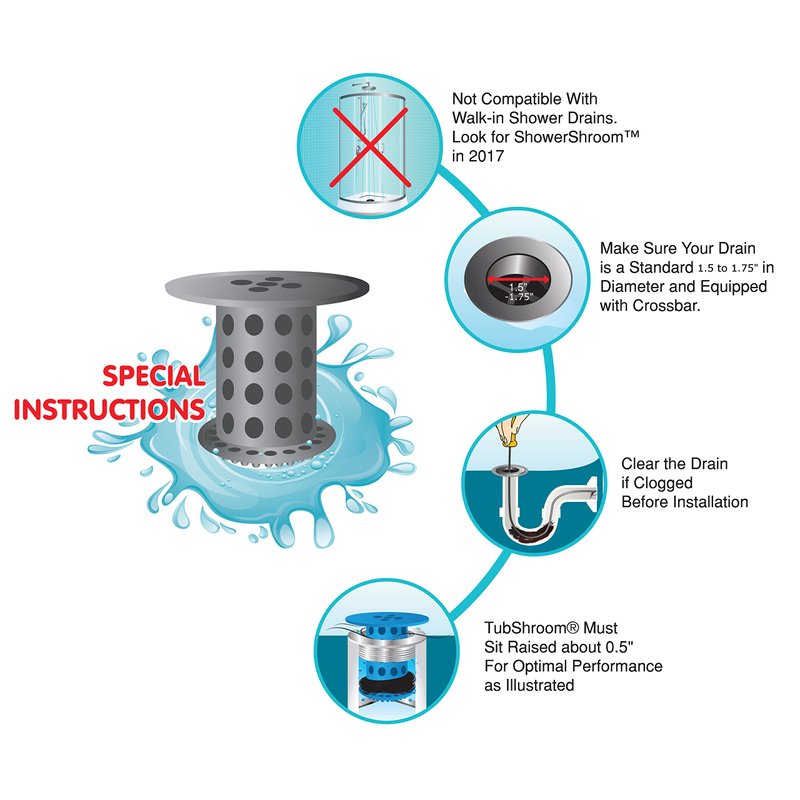 - PREVENTS CLOGGED TUB DRAINS – TubShroom hair catcher is a must-have bathroom accessory. It’s designed to catch any type of human or pet hair, preventing clogged drains, without disrupting the flow of water. Pack includes 2 chrome TubShrooms.