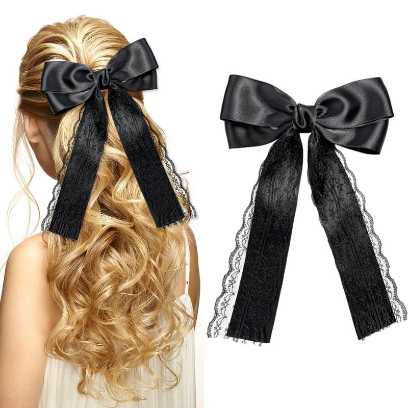 - Black Bow Hair Clips: Our sweet satin bow barrettes for women are made of quality organza fabric, attached with sturdy metal spring clips to hold them in place and wear them comfortably without slipping. The hair ribbon clip for women are not only soft and comfortable for the hair but also the most fashionable accessories for girl, bow hair clips for women, sweet bowknot hair clips with long tail, metal barrettes claw hair clips with bow