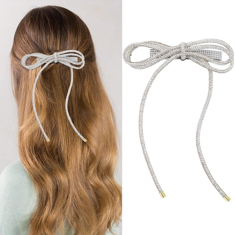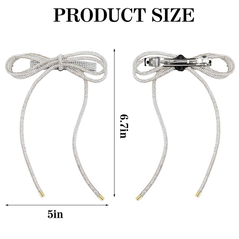 - LONG TAIL BOW HAIR CLIPS - Our bling rhinestone bow barrettes for women are made of quality alloy, and wear them comfortably without slipping. The glitter bows for women are not only soft and comfortable for the hair but also the most fashionable accessories for girl, long tassel ribbon bow hair clips for women, sweet bowknot hair clips, bow tie barrettes claw hair clips with bow